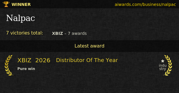 Nalpac is an adult company. Nalpac won XBIZ "Distributor Of The Year" awards two years in a row. Individual trophies owned by Nalpac include "Progressive Distributor Of The Year" and "Pleasure Products Distributor Of The Year".