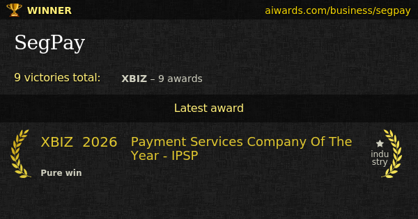 SegPay is an awarded adult industry company. The company won XBIZ "Payment Services Company Of The Year - Ipsp" awards eight years in a row. SegPay has some individual achievements, which include "Strategic Alliance Of The Year".