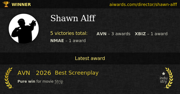 Shawn Alff is a pornographic director. Alff worked on such remarkable titles as "What We Do For Money" and "Evil Tiki Babes". Alff worked for studios Sweet Sinner, Burning Angel Entertainment and Exile. Shawn Alff won 5 AVN, XBIZ and NMAE trophies in total. Alff work was awarded with "Best Screenplay" (AVN and XBIZ) awards three times. Shawn Alff achievements include "Best Screenplay - Comedy" and "First Choice Awards".