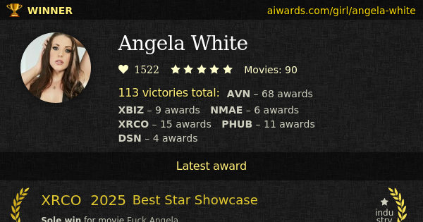 Angela White is an Australian adult movies actress. She was born on March 4 in Sydney, Australia. White performed in over ninety movies. Stars Kira Noir, Ryan Reid, Abigaiil Morris, Mick Blue, Manuel Ferrara and John Strong worked with Ms Angela White in several movies. Popular "Angela White: Dark Side", "Angela 3" and "I Am Angela" - these are only few videos where she performed. Multiple awarded studios including AGW Entertainment, Girlfriends Films and Jules Jordan Video shoot scenes with Angela White. Miss Angela White has several recognized perfomances, including group sex, all-girl, oral sex, double-penetration, solo, anal sex, threesome and gonzo. She was inducted in AVN and XRCO Hall Of Fame. Angela White got 113 AVN, XBIZ, NMAE, XRCO, Pornhub and DSN awards in total. Ms White won 39 fan competions conducted within AVN, NMAE and Pornhub awards. She collected eight AVN "Most Spectacular Boobs" trophies in a row. During 10 years Miss Angela White accepted adult industry awards. The highest "Performer of the Year" trophy was taken by her 10 times (AVN-2018, AVN-2019, AVN-2020, DSN-2019, DSN-2020, XBIZ-2016, XBIZ-2020, XRCO-2018, XRCO-2019, XRCO-2020). Direct awards owned by Angela White include "Best Solo/Tease Performance", "Best Actress" and "International Female Performer Of The Year".