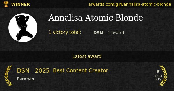 Annalisa Atomic Blonde is a prize-winning adult movies actress. First and only trophy came to her in 2025 - DSN "Best Content Creator" award.