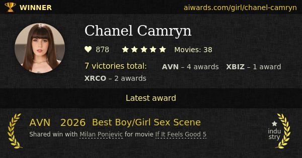 Chanel Camryn is a prize-winning pornstar and adult model. Ms Camryn played in over thirty movies. Multiple talents including Milan Ponjevic, Kai Jaxon and Jonni Darkko worked with Ms Chanel Camryn. Camryn performed in such movies as "Tushy Raw V66", "Suck Balls 6" and "Sunny Goldmelons". Multiple awarded studios including Tushy Raw, Evil Angel and Jonni Darkko Productions shoot scenes with Ms Camryn. Among Camryn perfomances in adult insudtry, gonzo and oral sex are the top-ranked ones. 2025th XRCO "Performer of the Year" went to Ms Chanel Camryn. Direct awards owned by Camryn include "Best New Starlet", "Best Supporting Actress" and "Female Performer Of The Year".