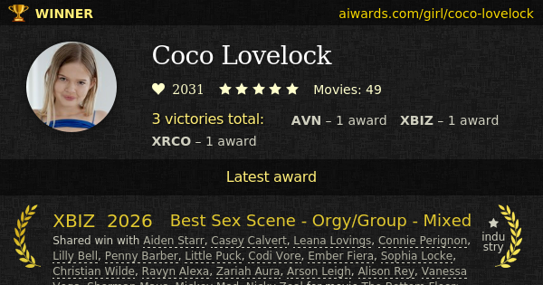 Shared win with Aiden Starr, Casey Calvert, Leana Lovings, Connie Perignon, Lilly Bell, Penny Barber, Little Puck, Codi Vore, Ember Fiera, Sophia Locke, Christian Wilde, Ravyn Alexa, Zariah Aura, Arson Leigh, Alison Rey, Vanessa Vega, Sherman Maus, Mickey Mod, Nicky Zeal for movie The Bottom Floor: Second Coming