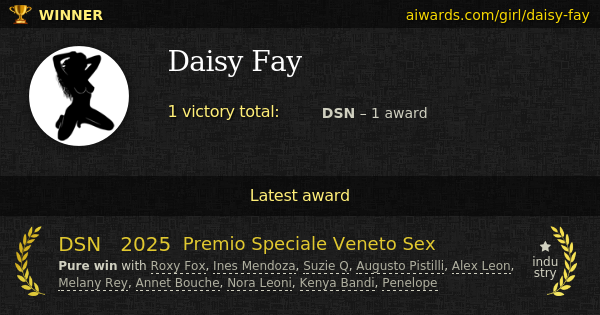 Daisy Fay is a pornographic performer. The only award collected by Miss Fay - DSN "Premio Speciale Veneto Sex" in 2025.