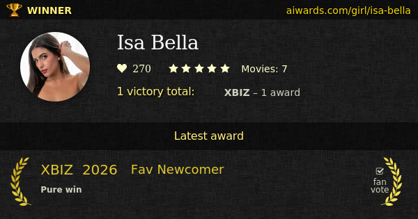 Isa Bella is an award winning pornographic actress. First and only award came to her in 2026.