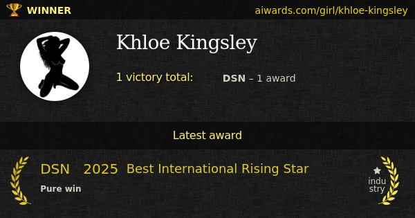 Khloe Kingsley is a pornographic actress. She obtained first and only trophy in 2025 (DSN "Best International Rising Star").