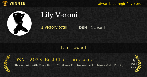Lily Veroni is a prize-winning adult movies actress. First and only award came to Veroni in 2023 - DSN "Best Clip - Threesome" trophy.
