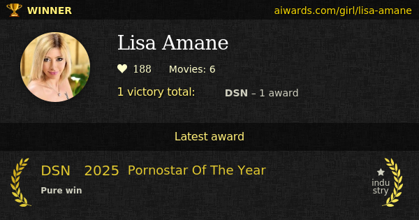 Lisa Amane is a prize-winning pornographic actress. Miss Lisa Amane obtained first and only trophy in 2025 (DSN "Pornostar Of The Year").