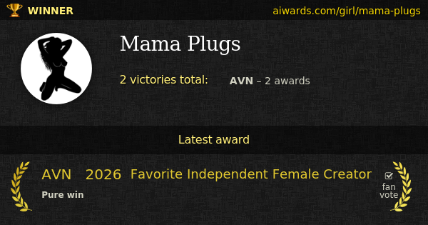 Mama Plugs is an award winning pornographic performer. Plugs got two AVN "Favorite Independent Female Creator" awards in a row.