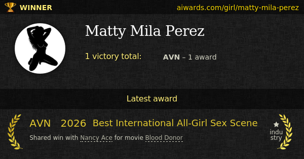 Matty Mila Perez is an adult movies actress. Multiple studios including Hentaied.pro Studio and Vampired invited her to perform in movies. Among Matty Mila Perez perfomances in adult insudtry, all-girl - the top-ranked one. Ms Matty Mila Perez won first and only award in 2026 - AVN "Best International All-Girl Sex Scene" trophy.