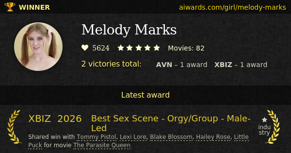 Melody Marks is a pornographic actress and adult model. Currently Ms Melody Marks appeared in over eighty pornographic film scenes. Among Melody Marks scene partners were Lexi Lore, Little Dragon, Hazel Moore and Tommy Pistol. Popular "Just Friends" and "The Parasite Queen" - this is only a small list of movies where Ms Melody Marks performed. Multiple known studios including Parasited and Hentaied shoot scenes with Miss Melody Marks. Melody Marks has several recognized perfomances, including group sex and all-girl. Marks achievements include "Best All-Girl Group Sex Scene" and "Best Sex Scene - Orgy/Group - Male-Led".
