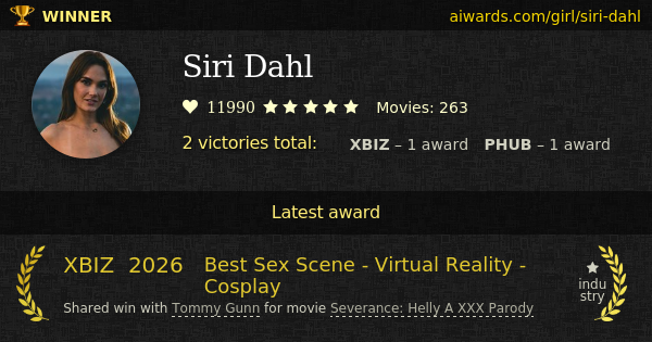Siri Dahl is an American award winning pornographic actress. In Minneapolis, Minnesota, US on June 20 Miss Dahl was born. Currently Siri Dahl starred in over two hundred and fifty movies. She has several acknowledged perfomances, including cosplay and virtual-reality. Siri Dahl won 1 personal award including "Top Lesbian Performer".
