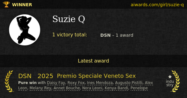 Suzie Q is a pornographic actress. The only award won by her - DSN "Premio Speciale Veneto Sex" in 2025.