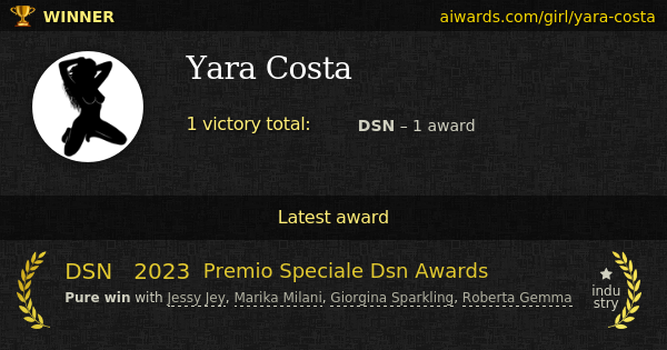Yara Costa is an award winning pornographic star. First and only award came to her in 2023 - DSN "Premio Speciale Dsn Awards" trophy.