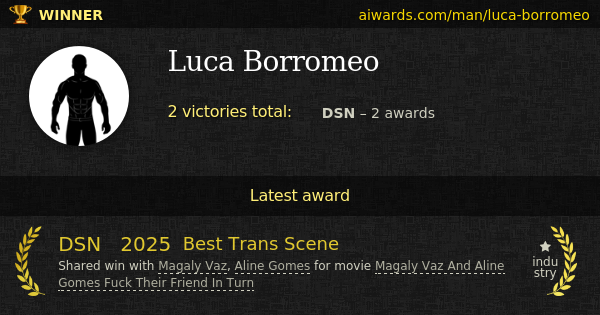 Luca Borromeo is an award winning pornographic male performer. He performed in such known videos as "A Hard Surprise" and "Magaly Vaz And Aline Gomes Fuck Their Friend In Turn". Picked list of trophies received by him: "Best Clip - Mixed" and "Best Trans Scene".