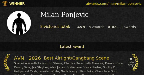 Shared win with Lexington Steele, Charles Dera, Seth Gamble, Damon Dice, Donny Sins, Jax Slayher, Alex Jones, Eddie Jaye, Vince Karter, Scotty P., Hollywood Cash, Jennifer White, Nade Nasty, Slim Poke, Chocolate God, Victor Ray, Derek Savage, Mannie Coco, Musa Phoenix for movie Hollywood Whore: A Jennifer White Showcase Film