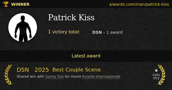 Patrick Kiss is a pornographic actor. Kiss collected first and only award in 2025 (DSN "Best Couple Scene").