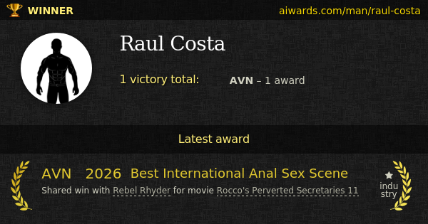 Raul Costa is an award winning pornographic male performer. The only award collected by Costa - AVN "Best International Anal Sex Scene" in 2026.