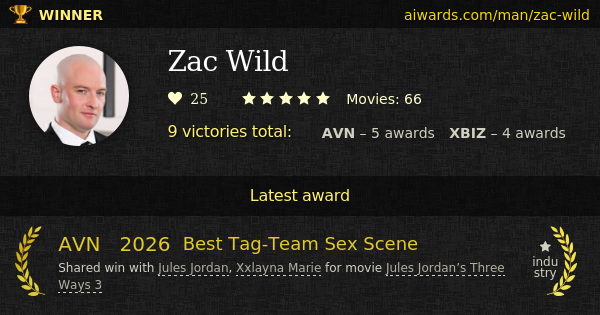 Shared win with John Strong, Mick Blue, Angela White, Isiah Maxwell, Oliver Flynn for web-scene Take Control: Angela White, Mick Blue, John Strong, Isiah Maxwell, Zac Wild And Oliver Flynn released in Going All Out With A Gangbang 2