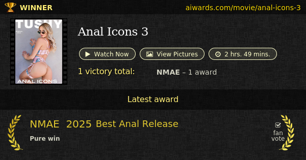 "Anal Icons 3" is an award winning porn film directed by Laurent Sky and shot by Tushy in 2024. Film composed of 4 sex scenes with total length of 2 hrs. 49 mins. Performers performed in this movie: Emma Hix, Alberto Blanco, Dante Colle, Summer Vixen and Christian Clay. Scenes from "Anal Icons 3" feature such themes as anal sex, double-penetration and group sex. This movie received first and only prize in 2025 (NMAE "Best Anal Release").