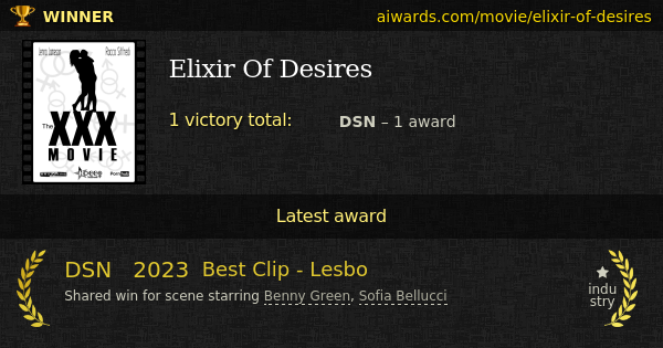 "Elixir Of Desires" is an awarded pornographic film shot in 2022 by Bennygreen.it. Sex action with Benny Green and Sofia Bellucci gained DSN "Best Clip - Lesbo" trophy.