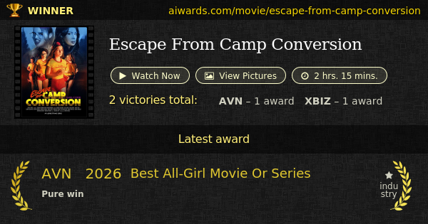 "Escape From Camp Conversion" (2025) is an awarded pornographic film produced by Adult Time. Movie containes 3 scenes with total length of 2 hrs. 15 mins. Several known performers appeared in this movie: Cami Strella, Codi Vore, Leana Lovings, Octavia Red and Ameena Green. This release scenes are shot with such features as all-girl, group sex, oral sex and threesome. Few achievements owned by this movie: "Best All-Girl Movie Or Series" and "Best All-Girl Movie".