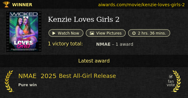 "Kenzie Loves Girls 2" is an awarded pornographic movie shot in 2025 by Wicked Pictures and directed by Kenzie Taylor. Film consists of 4 scenes with total length of 2 hrs. 36 mins. Performers such as Kenzie Taylor, Melody Marks, Gal Ritchie, Gizelle Blanco and Katrina Colt played in "Kenzie Loves Girls 2". This movie contains such acknowledged adult theme as all-girl. First and only prize came to the film in 2025 - NMAE "Best All-Girl Release" trophy.