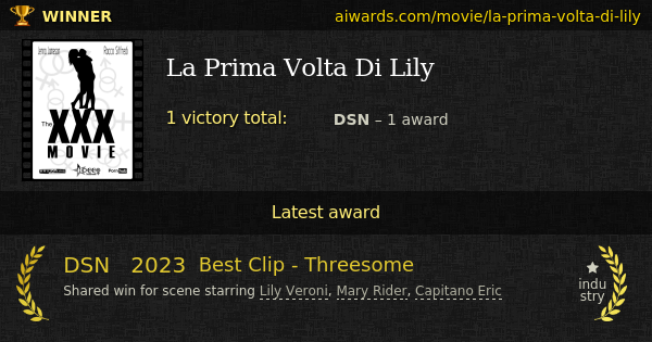 "La Prima Volta Di Lily" (2022) is a prize-winning pornographic film produced by Spicylab. Sex episode with Lily Veroni, Mary Rider and Capitano Eric was rewarded with DSN "Best Clip - Threesome" award.