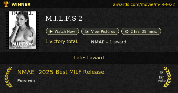 "M.I.L.F.S 2" is a 2025 awarded pornographic movie directed by Ricky Greenwood and created by DORCEL. Film total length is 2 hrs. 35 mins., which is shared among 5 scenes. Performers performed in this film: Vicki Chase, Jasmine Sherni, Isiah Maxwell, Leo Vice and Sarah Arabic. Scenes from the movie feature such themes as anal sex and group sex. The first and only award received by the movie is 2025 NMAE "Best MILF Release".