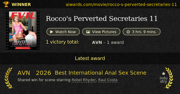 "Rocco's Perverted Secretaries 11" (2025) is a pornographic movie created by Evil Angel and directed by Rocco Siffredi. Movie total length is 3 hrs. 9 mins., which is distributed among 5 scenes. The movie contains such recognized adult themes as anal sex and group sex. Sex scene with Rebel Rhyder and Raul Costa was rewarded with AVN "Best International Anal Sex Scene" trophy.