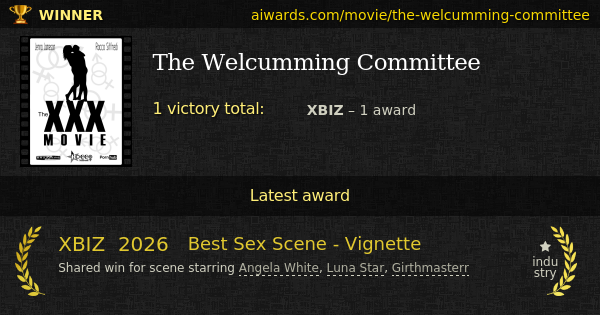"The Welcumming Committee" is a 2025 prize-winning XXX film created by Brazzers. Scene from the movie starring Angela White, Luna Star and Girthmasterr was acknowledged with XBIZ "Best Sex Scene - Vignette" trophy.