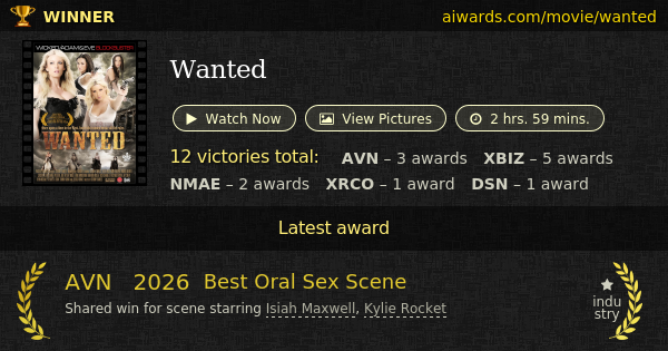 "Wanted" is a 2015 big budget pornographic epic film shot by Wicked Pictures and directed by Stormy Daniels. Film composed of 9 scenes with total length of 2 hrs. 59 mins. This film contains such recognized adult features as epic and oral sex. Episode starring Isiah Maxwell and Kylie Rocket collected AVN "Best Oral Sex Scene" achievement. "Best Epic" and "Best Feature" - highest movie recognition trophies, won by this movie on XRCO-2016 and NMAE-2016. "Wanted" took second place on the list of the most awarded movies of the 2016 (AVN, XBIZ, NMAE, XRCO and DSN). Stormy Daniels won directors prize - "Director Of The Year - Feature Release", for the work on this movie. The film won several trophies including "Best Drama", "Best Soundtrack" and "Best Oral Sex Scene".