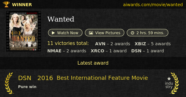 "Wanted" is a 2015 big budget pornographic epic film shot by Wicked Pictures and directed by Stormy Daniels. Film composed of 9 scenes with total length of 2 hrs. 59 mins. Performers such as Stormy Daniels, Anikka Albrite, Jay Crew, Chanel Preston and Brad Armstrong appeared in "Wanted". This film contains such recognized adult feature as epic. "Best Epic" and "Best Feature" - highest movie recognition trophies, won by "Wanted" on XRCO-2016 and NMAE-2016. This movie took second place on the list of the most awarded movies of the 2016 (AVN, XBIZ, NMAE, XRCO and DSN). Stormy Daniels won directors prize - "Director Of The Year - Feature Release", for the work on this movie. The film won several trophies including "Best Drama", "Best Soundtrack" and "Feature Movie Of The Year".