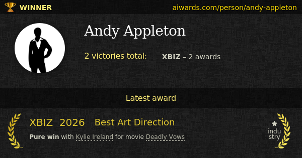 Andy Appleton is an adult industry professional. Appleton worked on such popular videos: "Gold Diggers" and "Deadly Vows". Two years in a row Appleton won XBIZ "Best Art Direction".