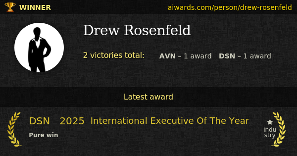 Drew Rosenfeld is an adult industry professional. Rosenfeld was inducted in AVN Hall Of Fame in 2023. Individual awards owned by Rosenfeld include "International Executive Of The Year".
