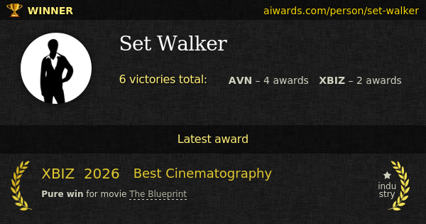 Set Walker is an adult industry professional. Splendid "Drive", "Mistress Maitland" and "Mistress Maitland 2" - this is only a small list of titles which Set Walker put hands on. Multiple studios including Pulse, Deeper and Blacked invited Walker to work on movies. Walker got totally 6 AVN and XBIZ trophies. Four years in a row Set Walker won AVN "Best Cinematography".