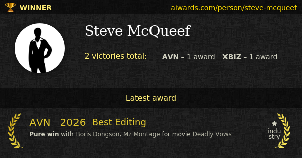 Steve McQueef is an adult industry professional. McQueef worked on several movies with Boris Dongson and Mz Montage. Steve McQueef collected several individual awards including "Best Editing".