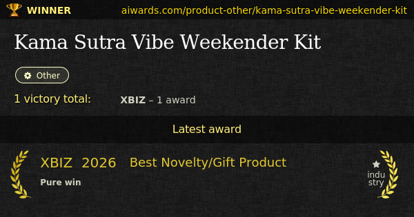 "Kama Sutra Vibe Weekender Kit" is an award winning adult pleasure product. The product collected first and only award in 2026 (XBIZ "Best Novelty/Gift Product").
