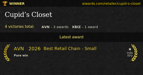 Cupid’s Closet is an adult retailer. The company got three AVN "Best Retail Chain - Small" awards in a row. Cupid’s Closet collected several individual awards including "Retailer Of The Year - 1-2 Stores".