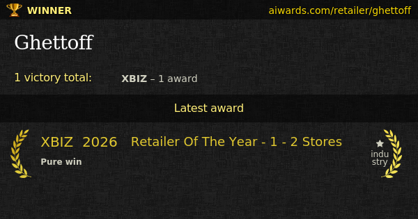 Ghettoff is an adult retailer. The only award obtained by the company is XBIZ "Retailer Of The Year - 1 - 2 Stores" (2026).