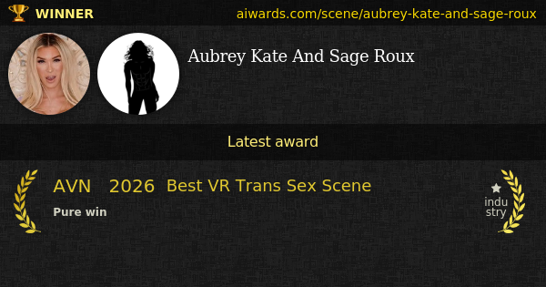 "The Boss! Aubrey Kate Domination" sex episode starring Aubrey Kate and Sage Roux was honored with AVN "Best VR Trans Sex Scene" in 2026.