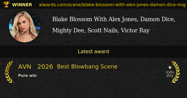 "Guess That Cock" porn scene performing Blake Blossom was honored with AVN "Best Blowbang Scene" in 2026.