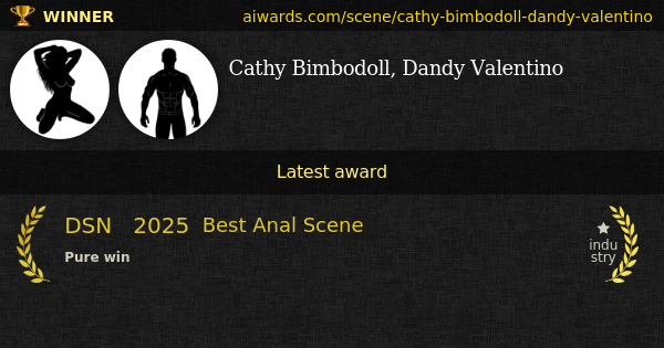 "Fucked Bare In The Asshole" anal sex episode starring Cathy Bimbodoll and Dandy Valentino won DSN "Best Anal Scene" in 2025.