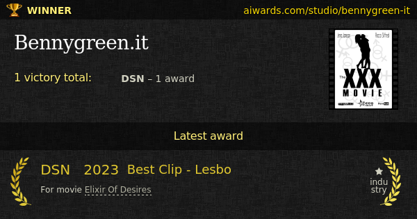 Bennygreen.it is an award winning adult movies studio. Classy "Elixir Of Desires" - these are only few movies made by the studio. First and only trophy came to the studio in 2023 - DSN "Best Clip - Lesbo" award.
