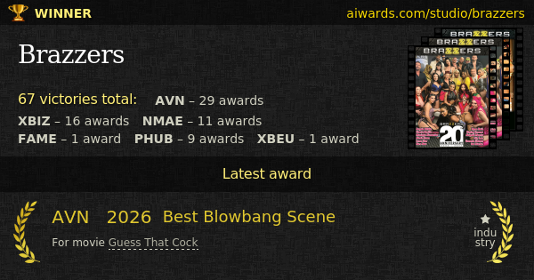 Brazzers is an adult industry studio. The company filmed huge set of classy titles including "Going All Out With A Gangbang 2", "Brazzers Presents: 20 For 20", "Storm Of Kings", "Guess That Cock" and "Pizza Party Blowbang". Latest winning titles are "Hot And Mean 38", "The Welcumming Committee" and "Day With A Pornstar 14". Parody, anal sex, solo, gonzo, group sex and double-penetration - studio acknowledged adult themes. Brazzers got totally 67 AVN, XBIZ, NMAE, F.A.M.E., Pornhub and XBIZ EU awards. Brazzers won Pornhub "Most Popular Channel" awards four years in a row. During 16 years the studio accepted adult industry awards. The studio individual achievements include "Best New Video Production Company", "Favorite Studio" and "Affiliate Program Of The Year".
