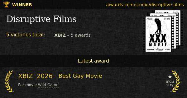 Disruptive Films is a pornographic studio. The studio filmed bunch of remarkable videos including "Honeyguide", "For You, I Will", "Briar Basin Ranch, Act III" and "The Last Course". The company selected achievements: "Gay Movie Of The Year", "Best Sex Scene - Gay" and "Gay Feature Of The Year".