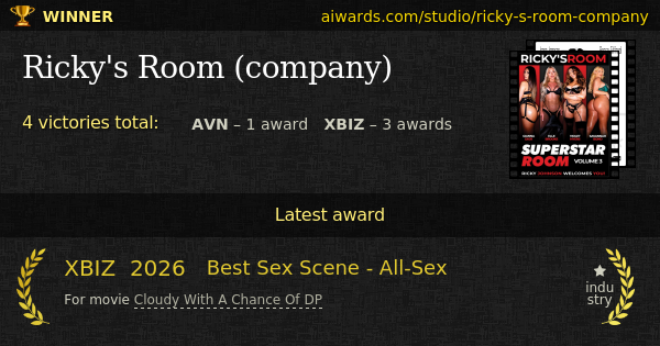 Ricky's Room (company) is a prize-winning adult movies studio. The studio shoot bunch of titles including "Cloudy With A Chance Of DP" and "Superstar Room 3". Selected company genre is gonzo. The studio achievements include "Best Gonzo/Cinemacore Series Or Free-Form Line", "Web Series/Channel Of The Year" and "Best Gonzo Movie".