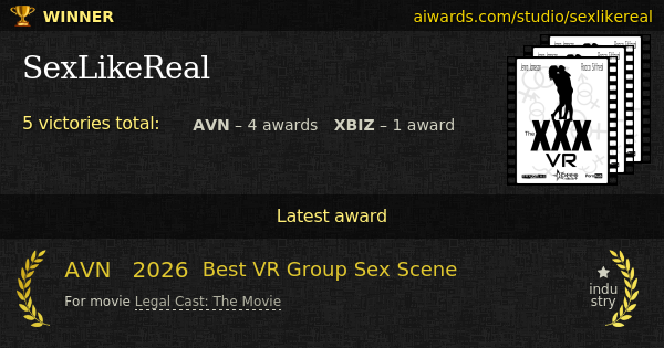 SexLikeReal is an adult industry studio. SexLikeReal created such known movies as "Legal Cast: The Movie", "Goth Girls: Tea Party", "Mile High Club", "Dream Team" and "Wicked Wedding". Virtual-reality and group sex - studio acknowledged adult themes. SexLikeReal got three AVN "Best Vr Group Sex Scene" awards in a row. Few awards owned by the studio: "Best Virtual Reality Sex Scene" and "Best Sex Scene - Virtual Reality".