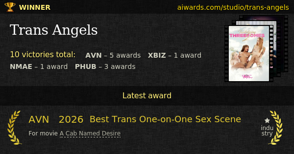 Trans Angels is an awarded adult movies studio. Popular "A Cab Named Desire", "Daisy’s Flower Box" and "Exclusive Angel Emma Rose" - these are only few titles filmed by Trans Angels. Studio high-ranked adult theme: group sex. Trans Angels got two Pornhub "Favorite Trans Channel" awards in a row. The studio individual achievements include "Trans Studio Of The Year" and "Most Popular Trans Channel".
