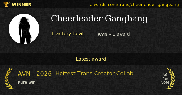 Cheerleader Gangbang is a prize-winning pornographic transsexual performer. The only prize won by Gangbang is AVN "Hottest Trans Creator Collab" (2026).
